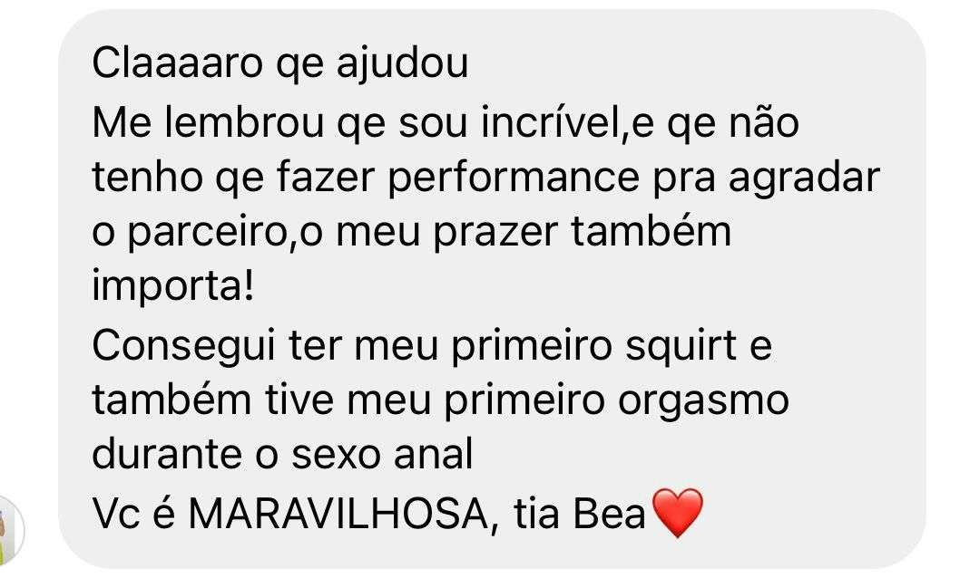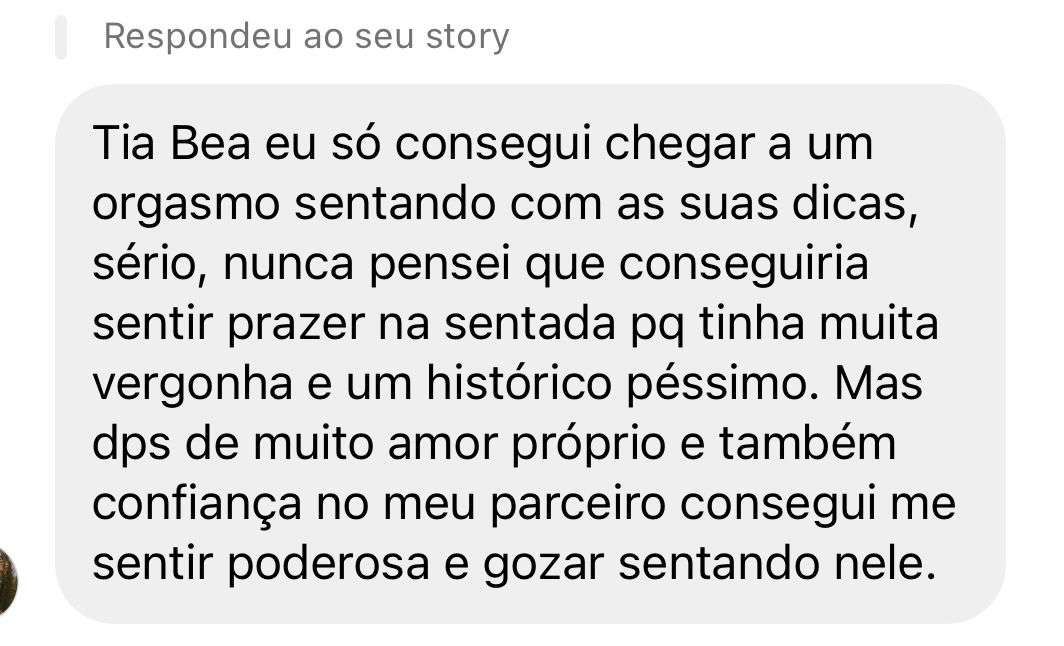 Assim como você, eu já fui insegura na hora H. Só chegava ao orgasmo no oral e muito raramente! Morria de VERGONHA DO MEU CORPO, já tive distorção de imagem, distúrbios alimentares e só tr4ns4v4 de BLUSA pra outra pessoa não ver meu corpo. Não conseguia me entregar pra sentir prazer então eu FINGIA e só me preocupava em satisfazer o meu parceiro para "acabar logo". Além de ser muito CDF na minha vida acadêmica, vejo como algo muito importante eu ter passado pessoalmente pelo processo de: ter preguiça de sexo ATÉ ALCANÇAR minha independência orgástica indo por cima. Por isso hoje meu propósito de vida é contribuir para que a sua trajetória seja mais leve e bonita do que a minha foi. Desejo de todo meu coração que você vivencie experiências na hora H que nem sabia que era possível!!